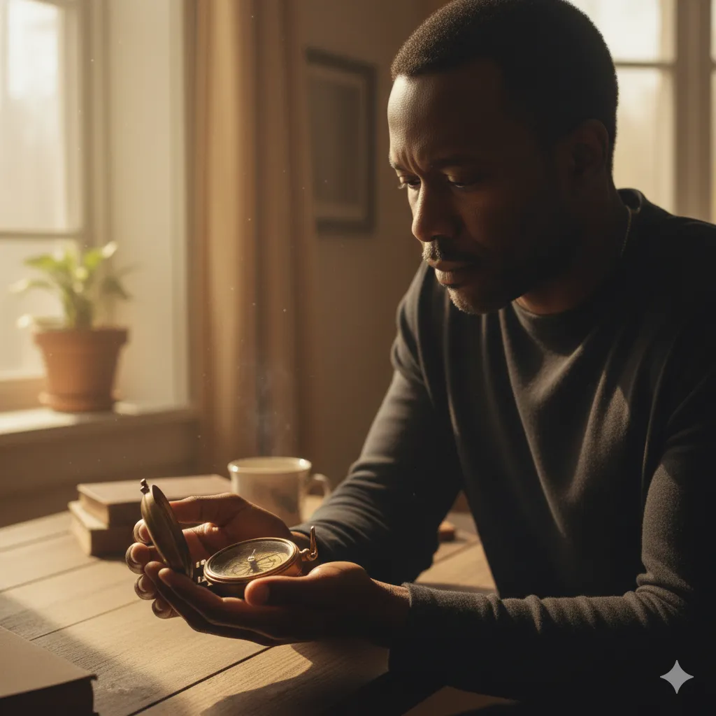 Your compass breaks when direction gets handed to you too early. Mine did. Abuse, peers, chaos, shortcuts, false pride, and reactionary choices pointed north for me when I was not ready. Real north is quieter, slower, candid, accountable, steady. Recovery made the compass mine again. Writing made the direction real again. You can rebuild the inner compass by choosing reflection over reaction, community over illusion, truth over performance. A transformed compass doesn’t promise a straight walk; it promises a conscious one. Write your map gently. Walk your pages consciously. Rise without spectacle. Rise with awareness.